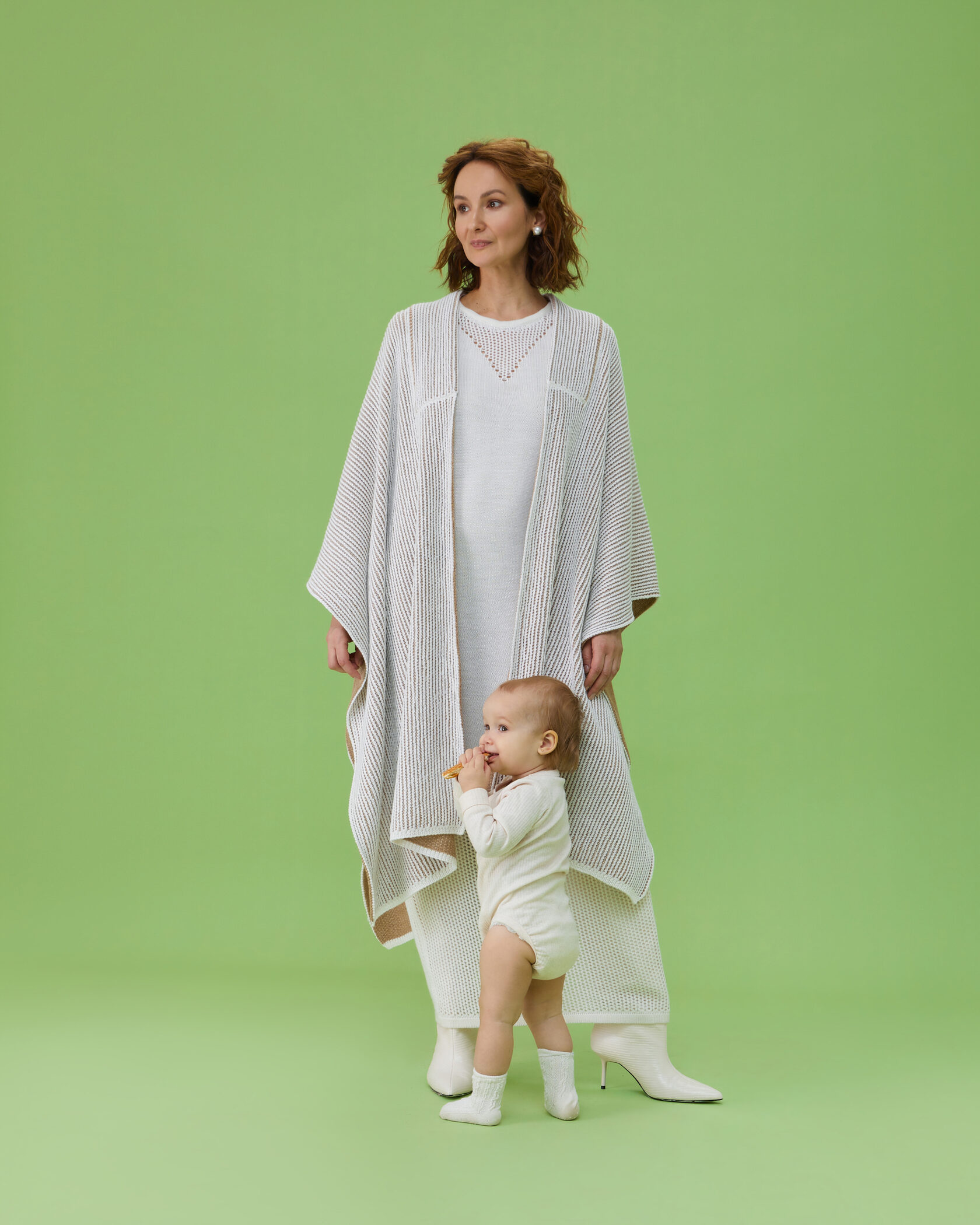 Пончо в нашем исполнении - это деликатный способ стильно и мягко использовать струящееся трикотажное полотно. Как изысканный аксессуар или на замену свитеру, а потом и вовсе, как покрывальце для малыша или "шторка" для кормления - просто незаменимая вещь в вашем гардеробе, которое будет с вами долгие годы.