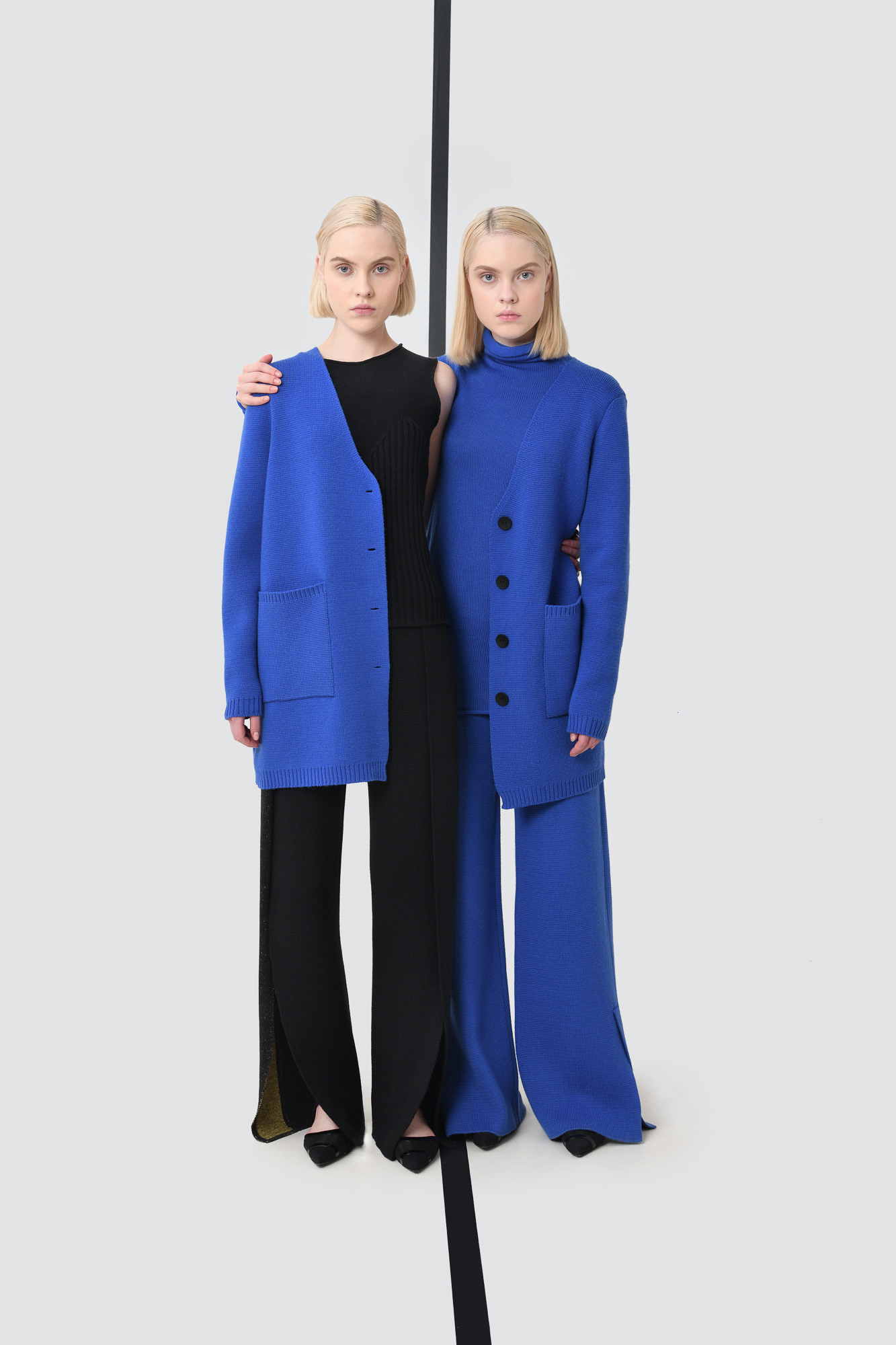 The main attraction of the collection is a cardigan consisting of two halves and a strap. By combining them, you can get countless new combinations that you can make depending on your mood. Leave the house in a more subdued outfit, and by the evening transform it into a daring and sexy one, just by unfastening one of the halves. This is the real transformation.